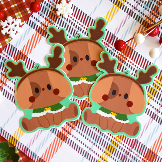 Holiday Puppy Nina "The Red-Nosed Reindeer" Christmas Waterproof Matte Vinyl Sticker