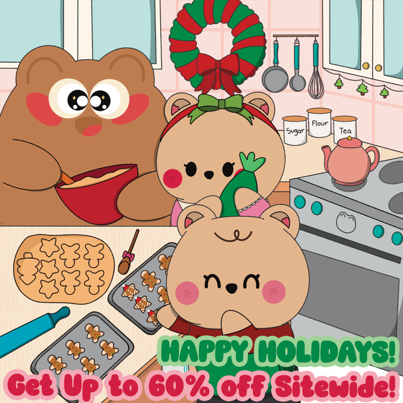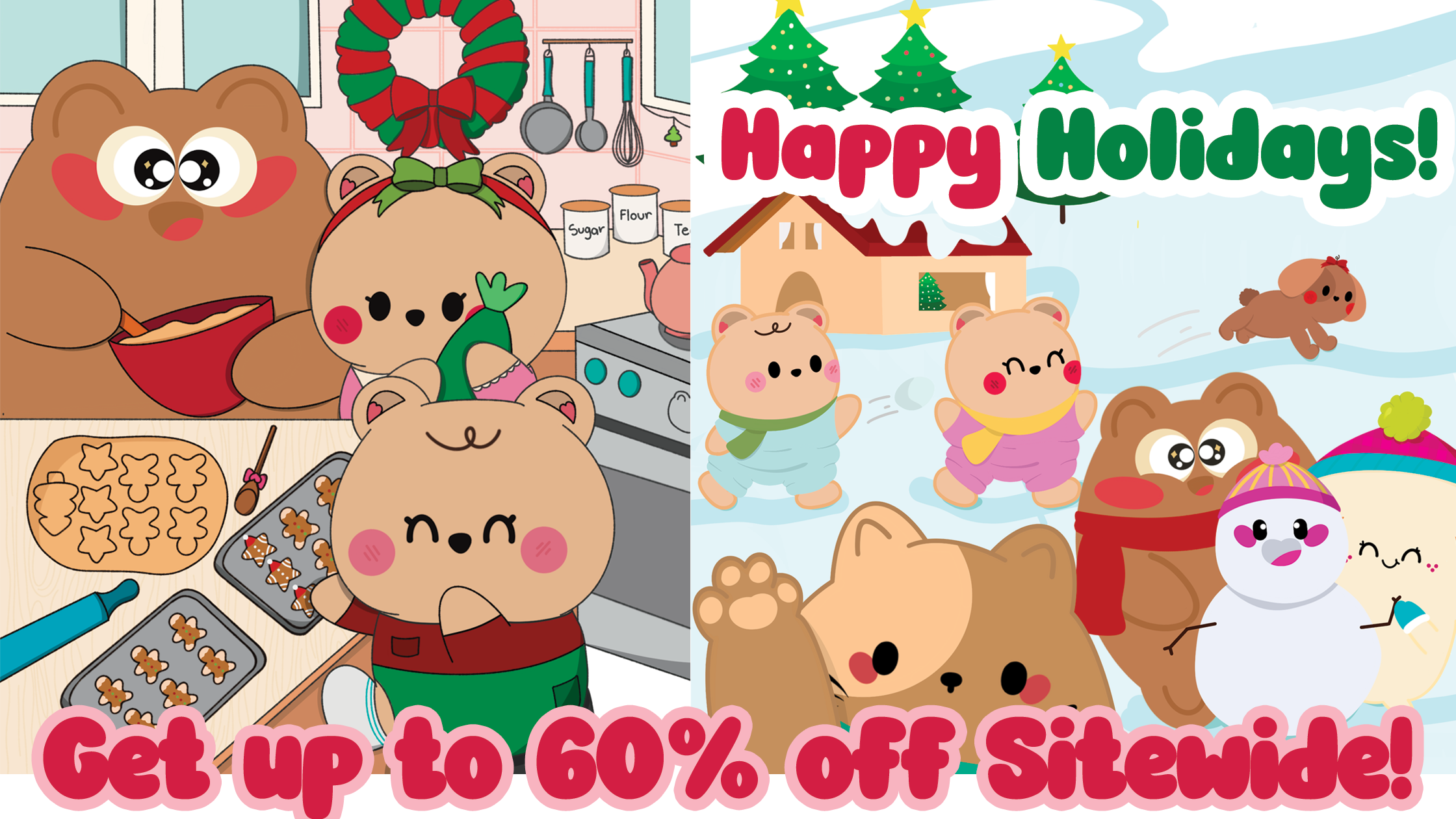 "Happy Holidays" From Our Little Bear Twins To You! Matte Vinyl Sticker Sheet
