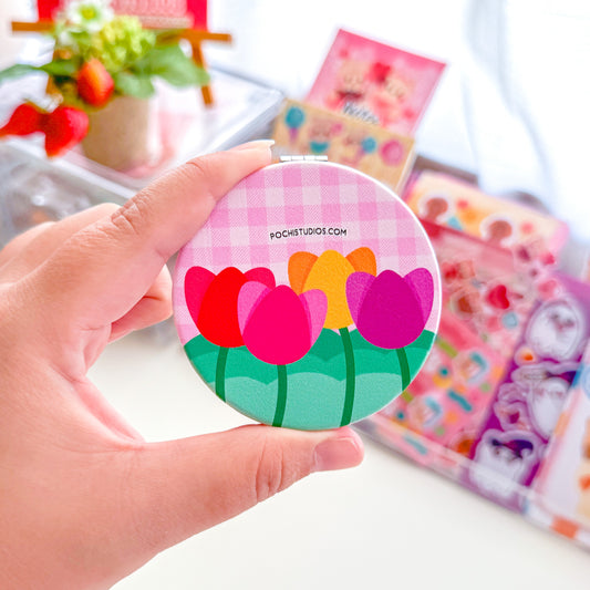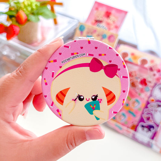 Pretty in pink Florecita Mushroom Round Compact Mirror