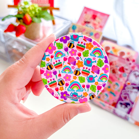 Colorful Pink Patterned Spring Icons Round Compact Mirror