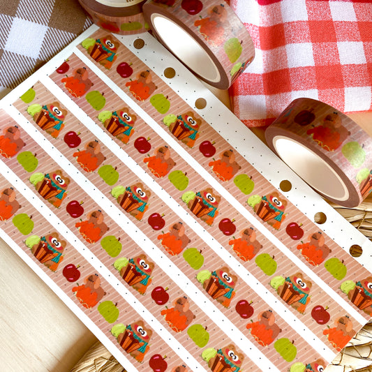Cozy Autumn Pochi Bear & Nina Puppy Fall Pumpkin and Apple Harvest Washi Tape