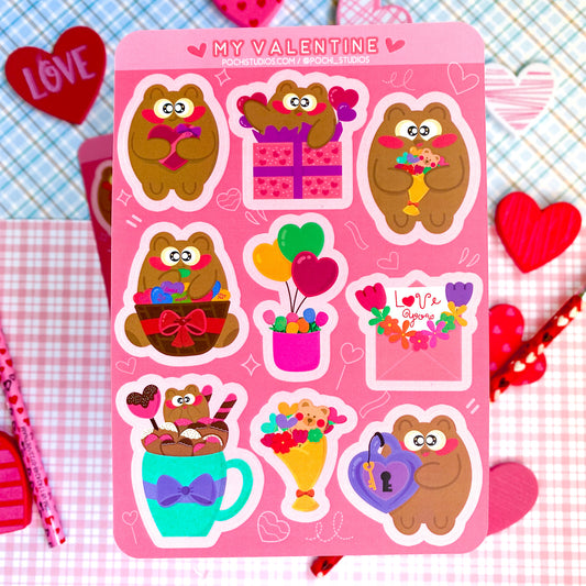 Be My Valentine Pochi Bear In Love Matte Vinyl Sticker Sheet