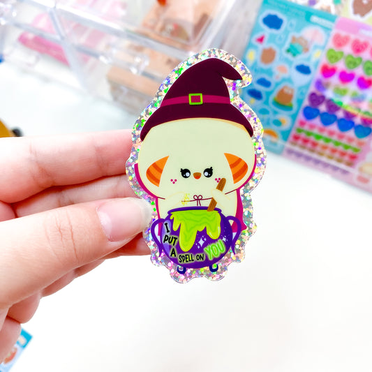 Halloween I Put A Spell On You Florecita Mushroom Waterproof Holographic Die-Cut Sticker