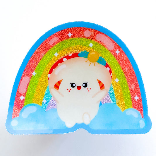 Colorful Spring Rainbow Florecita Girl Mushroom Waterproof Holographic Sparkly Die-Cut Sticker