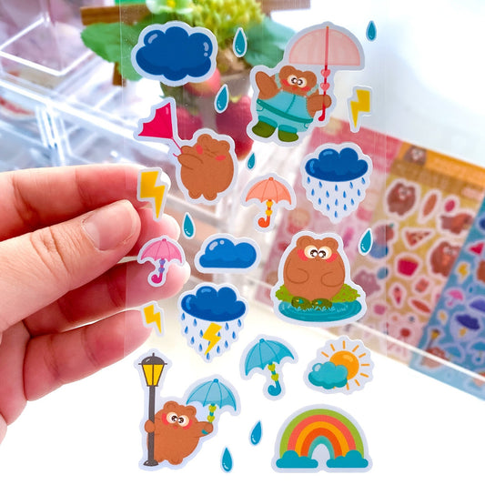 Dancing in the Rain Pochi Bear Matte Vinyl Sticker Sheet