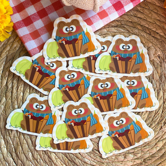 Apple Harvest Pochi Bear Fall Waterproof Vinyl Sticker
