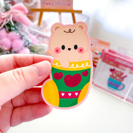 Cute Baby Bear Cookie Christmas Stocking Waterproof Die-Cut Sticker