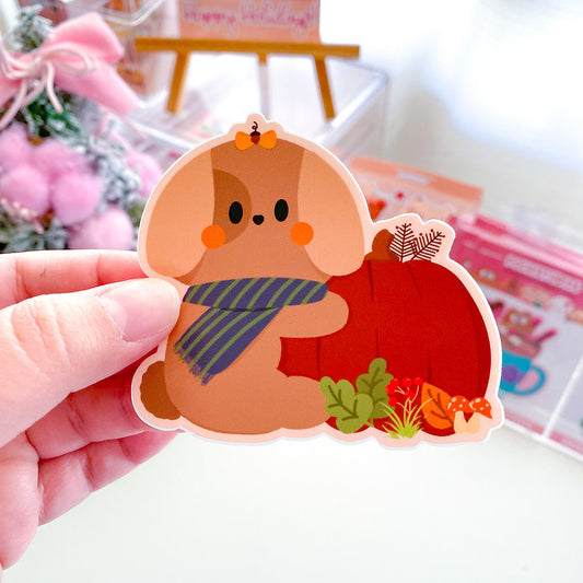 Autumn Red Pumpkin Nina Puppy with Scarf Luxe Waterproof Vinyl Sticker