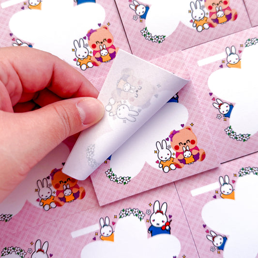 Baby ear Berries & Cute Bunny Friendship Flowers Pink 3x3 inch Sticky Notes