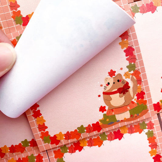 Cozy Autumn Chubbs Cute Chubby Kitty Fall Leaves Sticky Notes