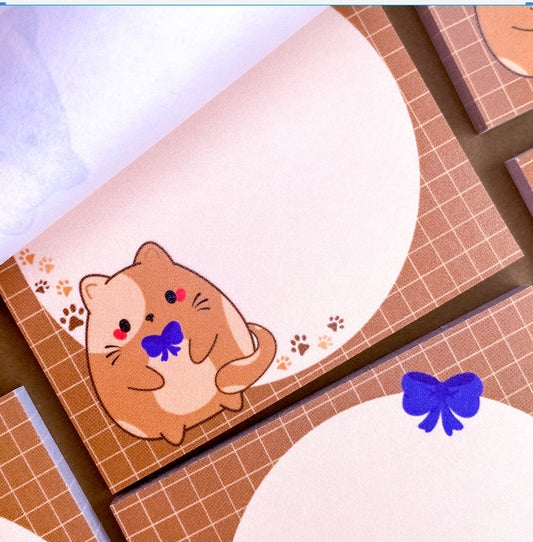Chubby Kitty Chubbs Brown Plaid Blue Bow Sticky Notes