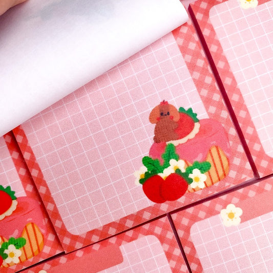 Nina Strawberry Cupcake Cute Puppy Pink Plaid Sticky Notes