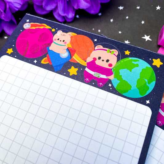 Little Baby Bear Twins Cookie & Berries "Space and Planets" 4x6 inch Notepad