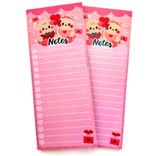 Adorable Baby Bear Twins "Love is in the Air" 3.5x8.5 in Long Notepad